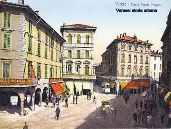 | Keywords: varese tram piazza porcari piazzaporcari corso roma corsoroma corso aldo moro corsoaldomoro piazza monte grappa piazzamontegrappa outdoor road architecture building Versione colorata. Corso Roma (al centro) visto da piazza Monte Grappa (già Porcari). L'edificio all'estrema sinistra con le insegne della Banca Lombarda e i portici sostenuti da colonne con capitelli di probabile origine tardo gotica, verrà sostituito nel 1929 da palazzo Mascardi/Pini su progetto dell'ing. Camillo Lucchina. Tra questa costruzione e casa Romanò (abbattuta nel 1960) lo stretto vicolo che porta alla piazza delle Oche (ora piazza Marsala) e al campanile di San Vittore. Versione colorata. Corso Roma (al centro) visto da piazza Monte Grappa (già Porcari). L'edificio all'estrema sinistra con le insegne della Banca Lombarda e i portici sostenuti da colonne con capitelli di probabile origine tardo gotica, verrà sostituito nel 1929 da palazzo Mascardi/Pini su progetto dell'ing. Camillo Lucchina. Tra questa costruzione e casa Romanò (abbattuta nel 1960) lo stretto vicolo che porta alla piazza delle Oche (ora piazza Marsala) e al campanile di San Vittore. |