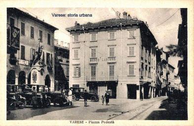 | Keywords: varese corso vittorio emanuele ii corsovittorioemanueleii corso giacomo matteotti corsogiacomomatteotti piazza podestà piazzapodestà monumento ai cacciatori delle alpi monumentoaicacciatoridellealpi photo border Piazza del Podestà (aperta nel 1583-87) con al centro la copia in bronzo (1901) del monumento ai Cacciatori delle Alpi (noto come "il Garibaldino") opera di Luigi Buzzi Leone (originale in pietra del 1861) dietro il quale si scorge il palazzo dei Biumi (1590). Piazza del Podestà (aperta nel 1583-87) con al centro la copia in bronzo (1901) del monumento ai Cacciatori delle Alpi (noto come "il Garibaldino") opera di Luigi Buzzi Leone (originale in pietra del 1861) dietro il quale si scorge il palazzo dei Biumi (1590). |