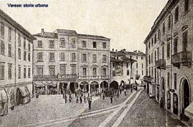 | Keywords: varese piazza porcari piazzaporcari piazza monte grappa piazzamontegrappa road outdoor Preziosa immagine di piazza Porcari (ora Monte Grappa) prima della costruzione di corso Roma (ora Moro) nel 1890 che avrebbe comportato l'abbattimento di tutti gli edifici sullo sfondo. La penultima casa su portici a destra ha un largo affresco (dovrebbe raffigurare Sant'Ambrogio). All'estrema destra è ben visibile casa Carantani già casa Porcari (rimodernata nel 1809 dall'arch. Lorenzo Zuccotti). Preziosa immagine di piazza Porcari (ora Monte Grappa) prima della costruzione di corso Roma (ora Moro) nel 1890 che avrebbe comportato l'abbattimento di tutti gli edifici sullo sfondo. La penultima casa su portici a destra ha un largo affresco (dovrebbe raffigurare Sant'Ambrogio). All'estrema destra è ben visibile casa Carantani già casa Porcari (rimodernata nel 1809 dall'arch. Lorenzo Zuccotti). |