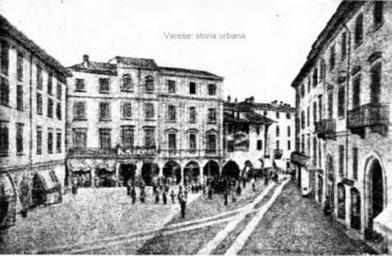 | Keywords: varese piazza porcari piazzaporcari piazza monte grappa piazzamontegrappa road outdoor Preziosa immagine di piazza Porcari (ora Monte Grappa) prima della costruzione di corso Roma (ora Moro) nel 1890 che avrebbe comportato l'abbattimento di tutti gli edifici sullo sfondo. La penultima casa su portici a destra ha un largo affresco (dovrebbe raffigurare Sant'Ambrogio). All'estrema destra è ben visibile casa Carantani già casa Porcari (rimodernata nel 1809 dall'arch. Lorenzo Zuccotti). Preziosa immagine di piazza Porcari (ora Monte Grappa) prima della costruzione di corso Roma (ora Moro) nel 1890 che avrebbe comportato l'abbattimento di tutti gli edifici sullo sfondo. La penultima casa su portici a destra ha un largo affresco (dovrebbe raffigurare Sant'Ambrogio). All'estrema destra è ben visibile casa Carantani già casa Porcari (rimodernata nel 1809 dall'arch. Lorenzo Zuccotti). |