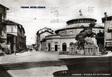 Keywords: Il monumento ai Caduti, opera di Enrico Butti (1925), collocato in piazza XX Settembre. Alle spalle del monumento il Politeama (aperto nel 1892) e a sinistra via Morosini. tram varese monumentoaicaduti piazzaxxsettembre viamorosini enricobutti