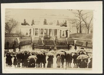 | Keywords: Picketing the White House March 4, 1917 276021v.jpg Summary Photograph of crowd with umbrellas watching National Woman's Party picketers in the rain in front of the White House Photograph published in The Suffragist 5 no 59 Mar 10 1917 cover Caption Suffragists Circling the White House Inauguration Day 1 photograph print; 5 x 7 in accession number Call Number Location National Woman's Party Records Group II Container II 276 Folder Group Photographs Nos 59-76 Source Collection Records of the National Woman's Party institution Library of Congress Manuscript Division http //hdl loc gov/loc mss/mnwp 276021 PD-1923 PD-Harris-Ewing suffragettes |