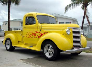 Keywords: pickup truck customized yellow pin striping truck vehicle transportation grille custom shiny classic design headlight hobbies imagery modified lowered model motor show retro