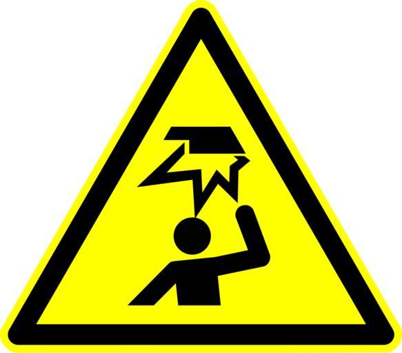 | Keywords: Pictogramme risque choc tete.svg en Warning sign low clearance risk of bumping mind your head fr Pictogramme risque de choc à la tête own 2013-02-28 Christophe Dang Ngoc Chan Cdang <span class signature-talk >talk</span> inkscape cdang SVG safety symbols Black and yellow triangular signs Head symbols Cc-zero |