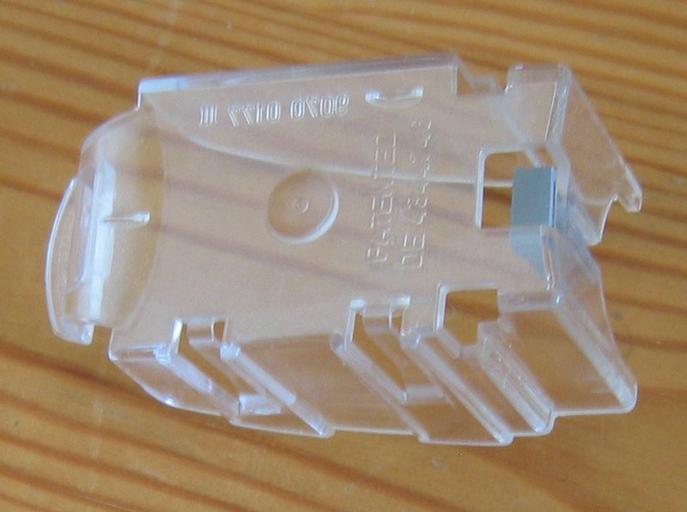 Keywords: Picture1 2007-05-07.jpg Transport protection for a HP ink-jet cartridge called CartClip Transportsicherung für eine Druckpatrone von Hewlett-Packard namens CartClip Own Ink-jet cartridges