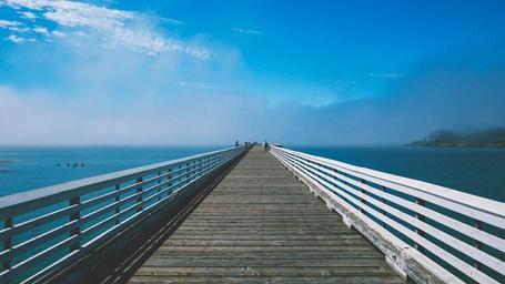 Keywords: pier dock blue sky ocean sea lake water landscape nature summer sunny sunshine foggy