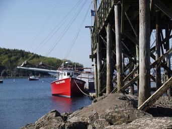 Keywords: pier poles shoreline ship boat acadia national park usa massasuchetts water atlantic rocks landscape scenery