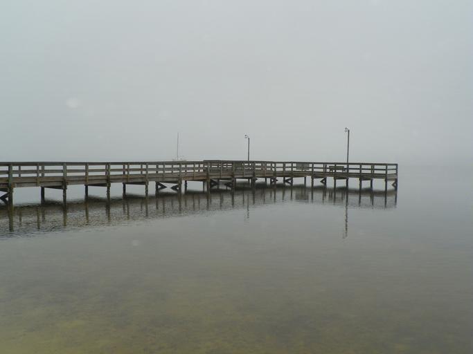 Keywords: pier water fog weather cloudy day nature foggy cloud