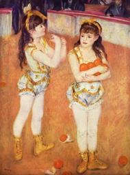 | Keywords: Pierre-Auguste Renoir 047.jpg Artwork de Im Zirkus Fernando en Acrobats at the Cirque Fernando Francisca and Angelina Wartenberg oil canvas cm 135 99 5 Art Institute of Chicago http //www artic edu/aic/collections/artwork/81558 museum webpage Yorck 1879 Creator Pierre-Auguste Renoir http //mail wikipedia org/pipermail/wikide-l/2005-April/012195 html Other versions PD-old-auto 1919 PD-Art-YorckProject Cirque Fernando Impressionist paintings of circus Juggling history Potter Palmer Collection 1879 paintings Paintings by Pierre-Auguste Renoir in the United States Ball juggling |