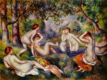| Keywords: Pierre-Auguste Renoir - Baigneuses dans la forêt.jpg Artwork Creator Pierre-Auguste Renoir ca 1897 Oil on canvas cm 73 7 99 7 Institution Barnes Foundation accession number object history credit line Renoir peintre du bonheur 1841-1919 de Gilles Néret Köln Taschen 2001 p 331 ISBN 9783822857410 PD-old-auto 1919 Renoir's bathers Group paintings of women bathing outdoors Female toplessness in paintings 1890s paintings in France Paintings by Pierre-Auguste Renoir in the Barnes Foundation Taken with Panasonic Lumix DMC-TZ2 |