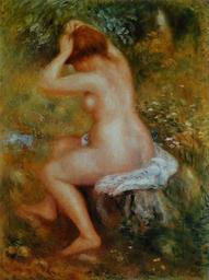 | Keywords: Pierre-Auguste Renoir - Baigneuse se coiffant.jpg between 1885 1890 Oil on canvas cm 39 4 29 2 Institution National Gallery London accession number NG6319 object history credit line bottom right Renoir Renoir sa vie son œuvre de Francesca Castellani trad Marie-Christine Gamberini Paris Gründ 1996 p 185 ISBN 9782700020687 PD-old-auto 1919 Paintings by Pierre-Auguste Renoir in the National Gallery London Renoir's bathers Female human backs in art 1880s paintings in France Taken with Panasonic Lumix DMC-TZ2 Paintings of nude sitting females in the 19th century |