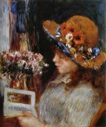 | Keywords: Pierre-Auguste Renoir - Jeune Fille lisant.jpg Artwork 1886 Oil on canvas cm 55 5 46 5 Institution Städel accession number object history credit line bottom left Renoir Renoir peintre du bonheur 1841-1919 de Gilles Néret Köln Taschen 2001 p 116 ISBN 9783822857410 PD-old-auto 1919 Paintings of children by Pierre-Auguste Renoir 19th-century profile portraits of women Paintings of sitting girls reading indoors Females in rooms in art Girls with hats in art 1886 paintings in Hesse 1886 works in Frankfurt am Main 1880s paintings in the Städel French paintings in the Städel Taken with Panasonic Lumix DMC-TZ2 1880s paintings from France 1886 portrait paintings |