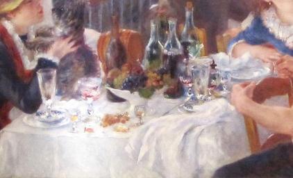 | Keywords: Pierre-Auguste Renoir - Luncheon on the Boating Party (Detail - Still life).jpg Artwork fr Le déjeuner des Canotiers en Luncheon of the Boating Party Das Frühstück der Ruderer Detail of the Still life in the foreground oil canvas en Washington D C en Philips Collection Philips Collection en 1881 Creator Pierre-Auguste Renoir Other versions Luncheon of the Boating Party Details of paintings by Pierre-Auguste Renoir PD-old-auto 1919 | ||||