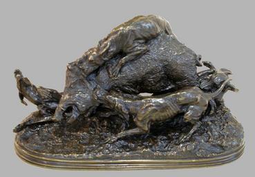 | Keywords: Pierre Jules Mène. Dogs attacking a wild boar.JPG be атэ ыял б онза; Тэхналогія ства эння ліццё; чаканка; паціні аванне; манці оўка; есца ства эння Ф анцыя Паме ы 27х18х46 en Pierre Jules Mène Dogs attacking a wild boar 1846 own work own work Institution Belarusian National Arts Museum Custom license marker 2012 02 22 PD-old Uploaded with UploadWizard Pierre-Jules Mêne Sculptures of boars Sculptures in the National Arts Museum of the Republic of Belarus Photos created by Olga Sitnik Sculptures of dogs in Belarus Sculptures in Belarus 19th-century sculptures in Belarus |