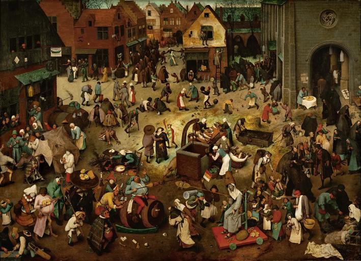 | Keywords: Pieter Bruegel d. Ä. 066.jpg Artwork de Serie der sogenannten bilderbogenartigen Gemälde Szene Streit des Karnevals mit der Fastenzeit en The Fight Between Carnival and Lent Le Combat de Carnaval et Carême pl Wojna Postu z Karnawałem Oil Wood cm 118 164 de Wien de Kunsthistorisches Museum Gemäldegalerie de Signatur Bez links unten auf einem Stein BRVEGEL V und E ligiert 1559 Inv -Nr GG_1016 Provenienz vermutlich Rudolf II ; 1748 aus der Schatzkammer in die Galerie Es gibt mehrere Kopien nachzulesen bei Klaus Ertz Pieter Brueghel der Jüngere Die Gemälde Bd 1 Lingen 1998/2000 Kat nr 183-186 S 253f Eine befindet sich im Musées Royaux des Beaux-Arts de Belgique Kat nr E 183 und gilt als eigenhändig - d h Pieter Brueghel d J - eine weitere wurde am 31 5 1989 bei Christie's in New York versteigert E 185 und gilt als Werkstattarbeit Ein weiteres Bild in Privatbesitz E 186 gilt als eigenhändig Die Kat nr E 184 ist ein seit dem 2 Weltkrieg verschollenes Bild aus Krakau Muzeum Narodowe w Krakowie 1937 wurde es von Stanislaw Ursyn-Rusiecki dem Museum gestiftet The Yorck Project 10 000 Meisterwerke der Malerei DVD-ROM 2002 ISBN 3936122202 Distributed by DIRECTMEDIA Publishing GmbH 1559 Creator Pieter Bruegel d Ä http //mail wikipedia org/pipermail/wikide-l/2005-April/012195 html Other versions PD-old-100 PD-Art-YorckProject The Fight Between Carnival and Lent Kunsthistorisches Museum |