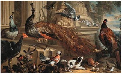 | Keywords: Pieter Casteels III - Birds.jpg Artwork creator Peter Casteels III en Birds A Peacock and a Peahen a Pheasant a Turkey a Jay Doves Goldfinches and a Blue Tit a Spaniel a Weasel and a Lizard eating a Butterfly by a Plinth 1st half of 18th century http //www christies com/lotfinder/lot/pieter-casteels-iii-1343945-details aspx intObjectID 1343945 Oil canvas cm 84 2 139 8 Sold by Christie's on 9 December 1994 in London as lot 5317 Other versions PD-old-100 Peter Casteels III 18th-century still life paintings in private collections 1700s still life paintings |