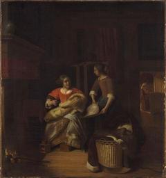 | Keywords: Pieter de Hooch - Lady with baby and maid showing her a flat fish Cat501.jpg Artwork creator Pieter de Hooch Title A Lady and a Child with a Serving Maid Dienstmeid die een schol toont aan een vrouw met kind 248188 ca 1674-1676 oil canvas cm 86 2 79 7 Philadelphia 501 Philadelphia Museum of Art P C Sutton Pieter de Hooch Oxford 1980 cat no 112A object history credit line http //www philamuseum org/collections/permanent/102288 html Other versions PD-old-100 Genre paintings by Pieter de Hooch 1670s paintings Paintings in the Philadelphia Museum of Art |