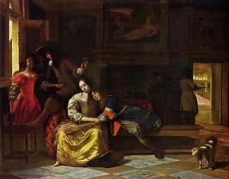 | Keywords: Pieter de Hooch - A party with a couple embracing.jpg Artwork creator Pieter de Hooch Title Interior with two embracing couples Interieur met twee amoureuze koppels 248166 1673-1675 oil canvas cm 63 5 80 P C Sutton Pieter de Hooch Oxford 1980 cat no 106 ; C Hofstede de Groot Beschreibendes und Kritisches Verzeichnis der Werke der Hervorragendsten Hollandischen Maler des XVII Jahrhunderts vol I Paris 1907 cat no 5 possibly no 184 object history credit line https //rkd nl/nl/explore/images/248166 Other versions PD-old-100 Genre paintings by Pieter de Hooch 1660s paintings |