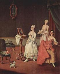 | Keywords: Pietro Longhi 006.jpg Artwork title de Dame bei der Toilette oil canvas cm 61 50 Ca' Rezzonico Venice genre works The Yorck Project 10 000 Meisterwerke der Malerei DVD-ROM 2002 ISBN 3936122202 Distributed by DIRECTMEDIA Publishing GmbH c 1760 creator Pietro Longhi http //mail wikipedia org/pipermail/wikide-l/2005-April/012195 html Other versions PD-old-100 PD-Art-YorckProject 1760s fashion Paintings in the Museo del Settecento Veneziano Dressing in art Hygiene Maids in art Mistress and maid in art Mirrors in paintings People with dogs in art Rococo genre paintings Rococo paintings of people Pietro Longhi |