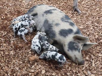 Keywords: pig piglet suckle farm animals sow breeding pet sleep paarhufer young animals happy pig