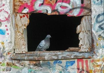 Keywords: pigeon bird window graffiti sill outside architecture urban grunge