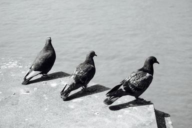 Keywords: pigeons group urban birds city shadow