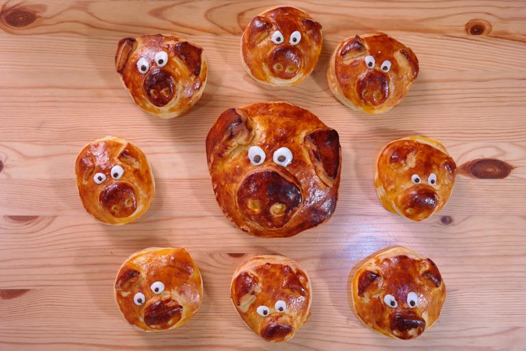 Keywords: piglet pastries pig family family yeast biscuits delicious lucky pig dough sweet funny sow children pig child kids of sow