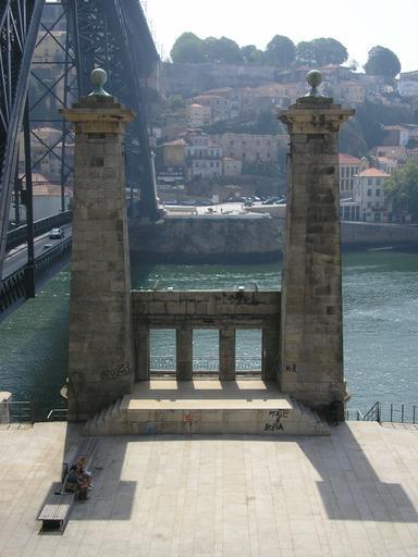 | Keywords: Pilares da Ponte Pensil (Porto).PNG What's left of the suspended bridge Ponte Pênsil that used to connect both banks of the river Douro -- Porto and Vila Nova de Gaia -- in the mid-19th century own 26 de Novembro de 2006 Manuel de Sousa Ponte pênsil D Maria II Images by Manuel de Sousa |