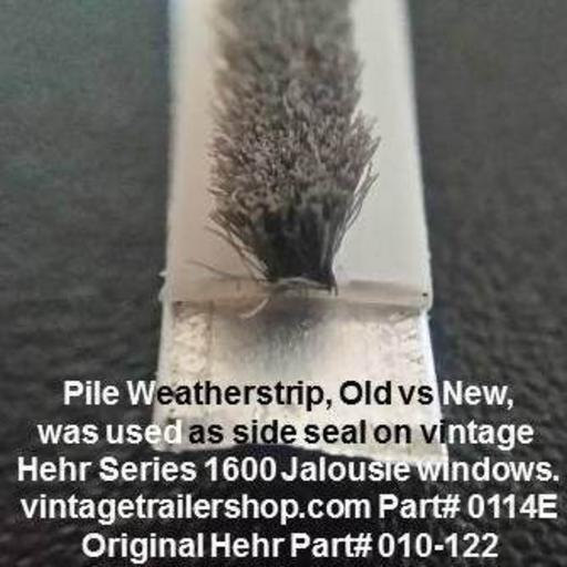 | Keywords: Most late 50s and early 60s vintage trailers used Hehr Jalousie windows. The plastic backing of this pile weatherstrip is identical to the width and thickness of the original aluminum-backing. vintagetrailershop.com Part# 0114E Original Hehr Part# 010-122 |