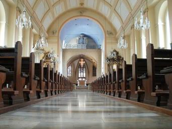 Keywords: pilgrimage church waghaeusel interior architecture benches view altar cross christianity religious monument worship holy catholic history decor spirituality