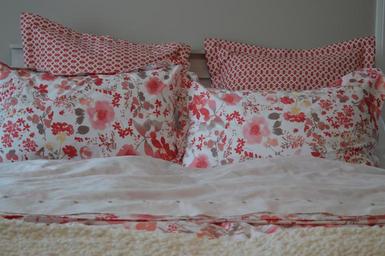 Keywords: pillows floral bed bedroom linens cushions bedspread headboard colorful decorative decor fabric