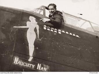 | Keywords: Pilot Officer Dickson of 467 Squadron RAAF 1944 AWM P10215.001.jpg AWM caption 422038 Pilot Officer PO Colin Dickson 467 Squadron RAAF sitting in the cockpit of a Lancaster aircraft with the nose art 'Naughty Nan' An electrician from Kempsey in civilian life PO Dickson was one of the crew of Lancaster aircraft JA901 which took off from RAF Waddington England on the night of 3/4 May 1944 to bomb military camps at Mailly-le-Camp France The aircraft was shot down on 4 May 1944 at Mertz France PO Dickson was one of the five crew members who were killed He was aged 23 Two other crew members survived and evaded capture P10215 001 1944 not stated Copyright expired - public domain PD-AustraliaGov World War II people of the Royal Australian Air Force Dickson C Avro Lancaster aircrew No 467 Squadron RAAF Nose art on Avro Lancaster Cockpit of Avro Lancaster World War II forces of Australia in the United Kingdom Mailly-le-Camp |