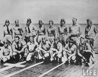 | Keywords: Pilots of VT-8.jpg en Pilots of Hornet's VT-8 shortly before battle of Midway Standing L-R Owens Ensign Fayle Waldron R A Moore J M Moore Evans Teats Cambell Kneeling L-R Ellison Kenyon Gray sole survivor Gay Woodson Creamer Miles cs Piloti VT-8 z Hornetu těsně před bitvou u Midway Stojící zleva do prava Owens Ensign Fayle Waldron R A Moore J M Moore Evans Teats Cambell Klečící zleva do prava Ellison Kenyon Gray Gay jediný přeživší Woodson Creamer Miles http //images google com/hosted/life/l imgurl 4cbd23b1e74ea8d9 q John 20C 20Waldron prev /images 3Fq 3DJohn 2BC 2BWaldron 26hl 3Den 26lr 3D 26sa 3DN 26um 3D1 US Government befor 1942-06-04 http //www history navy mil/photos/pers-us/uspers-w/j-waldrn htm Photo NH 93595 PD-USGov-Military-Navy Aboard USS Hornet CV-8 Battle of Midway US forces |