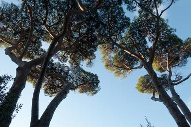 Keywords: pine forest sky blue low angle shot tree maremma italy
