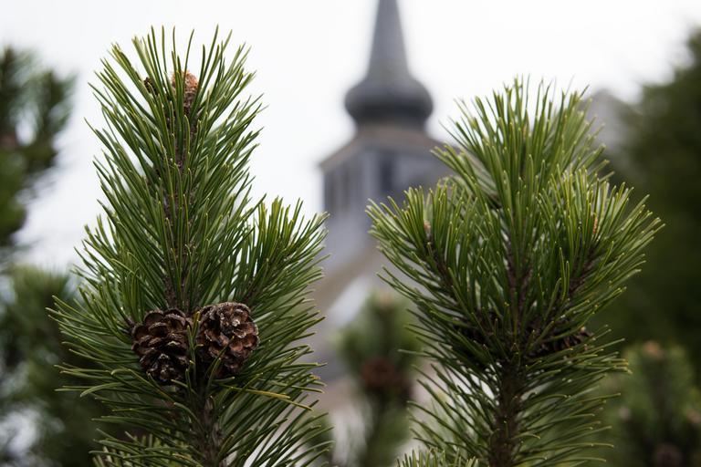 Keywords: pine pine cones church steeple tap conifer pine needles needles softwood green branches tower
