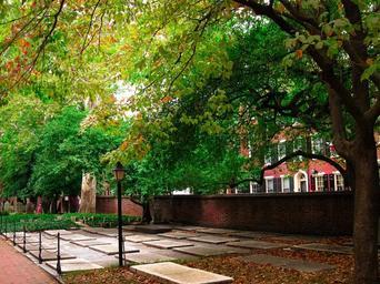 Keywords: pine street courtyard neighbourhood street wall compound pavement trees old city philadelphia
