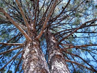 Keywords: pine tree branches nature outdoor trunk bark coniferous park sunlight texture