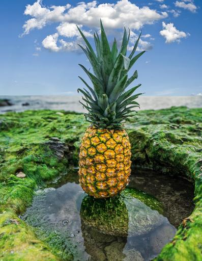 Keywords: pineapple fruit food healthy fresh fruit sweet fresh nutrition tropical healthy foods healthy eating eating healthy landscape blue sky sky water reflection