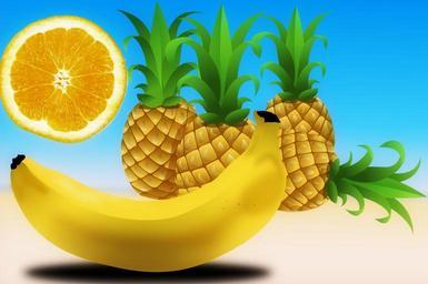 Keywords: pineapple tropical fruits food edible yellow green leaves delicious tasty sweet healthy nutritious ripe banana fruit orange vitamins eat healthy lemon half vegan