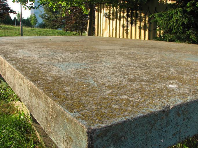 Keywords: Ping pong table 02.JPG en An old concrete ping pong table in Bystrc This one is from 1970s own own photo HTO 2005-05-24 Table tennis tables