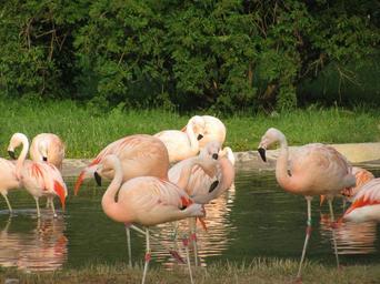 Keywords: pink flamingo flock bathing water tropical animals big wildlife exotic family community group nature outdoors wild park