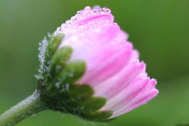 Keywords: pink marguerite petals dew water flower green