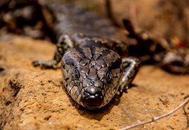 Keywords: pink tongued skink skink lizard reptile scales shiny brown speckled pattern wild rocks queensland australia