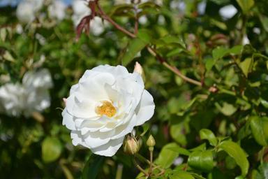 Keywords: pink white flower rosebush petals garden