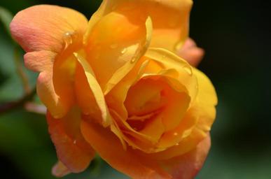 Keywords: pink yellow rose orange rose yellow orange flowers flower nature garden rosebush dew drop
