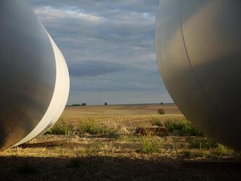 Keywords: pinwheel construction unfinished share tube ground landscape site evening light shadow sun clouds