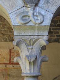 | Keywords: Piona17.JPG Priorato di Piona particolare di un capitello del chiostro Autore Giorces Priorato di Piona detail of a capital in the cloister Picture by Giorces 2006-04-04 own assumed Giorces Priorato di Piona in Colico Capitals architecture in Italy Piona Medieval capitals Italy |