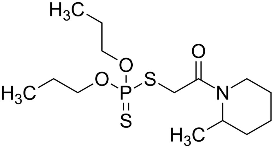 Keywords: Piperophos 200.svg validSVG Structure of S- 2- 2-methylpiperidin-1-yl -2-oxoethyl O O-dipropyl phosphorodithioate Own 2014-05-03 Emeldir <span class signature-talk >talk</span> Chemical structure verified https //upload wikimedia org/wikipedia/commons/4/43/Piperophos_200 svg 1S/C14H28NO3PS2/c1-4-10-17-19 20 18-11-5-2 21-12-14 16 15-9-7-6-8-13 15 3/h13H 4-12H2 1-3H3 UNLYSVIDNRIVFJ-UHFFFAOYSA-N 24151-93-7 Synonyms <small>piperophos Piperophos S- 2- 2-Methyl-1-piperidinyl -2-oxoethyl O O-dipropyl phosphorodithioate S- 2- 2-methyl-1-piperidinyl -2-oxoethyl O O-dipropyl phosphorodithioate</small> PD-chem Herbicides Piperidines Propyl compounds