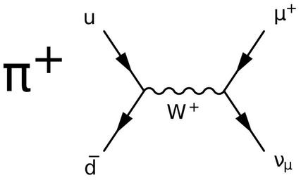| Keywords: PiPlus muon decay.svg en Feynman diagram of a positive pion decay own Krishnavedala 2014-09-27 other fields O + v w LaTeX the generated PDF converted to SVG using pdf2svg and manually edited for margins latex \documentclass12pt border 5pt crop multi false class scrartcl standalone \usepackageT1 fontenc \usepackageutf8 inputenc \usepackage lmodern \usepackage tikz \usepackage feynmp \usepackage graphicx \DeclareGraphicsRule mps \begin document \setlength \unitlength 05cm \begin fmffile diagram \Huge \pi + \begin tikzpicture baseline current bounding box center \node \fmfframe 5 17 40 25 \begin fmfgraph 80 40 \fmfpen thick \fmfleft i1 i2 \fmflabel \bar d i1 \fmflabel u i2 \fmfright o1 o2 \fmflabel \nu_\mu o1 \fmflabel \mu + o2 \fmf fermion i2 v1 i1 \fmf photon label W + v1 v2 \fmf fermion o2 v2 o1 \end fmfgraph ; \end tikzpicture \end fmffile \end document Feynman diagrams Images with LaTeX source code Weak nuclear force Cc-zero |