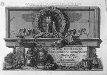 View Original:piranesi_cover_page_above_eagle_holy_apostles_roman_portico_bottom_vases_vatican_lib.jpg (1500x1051)